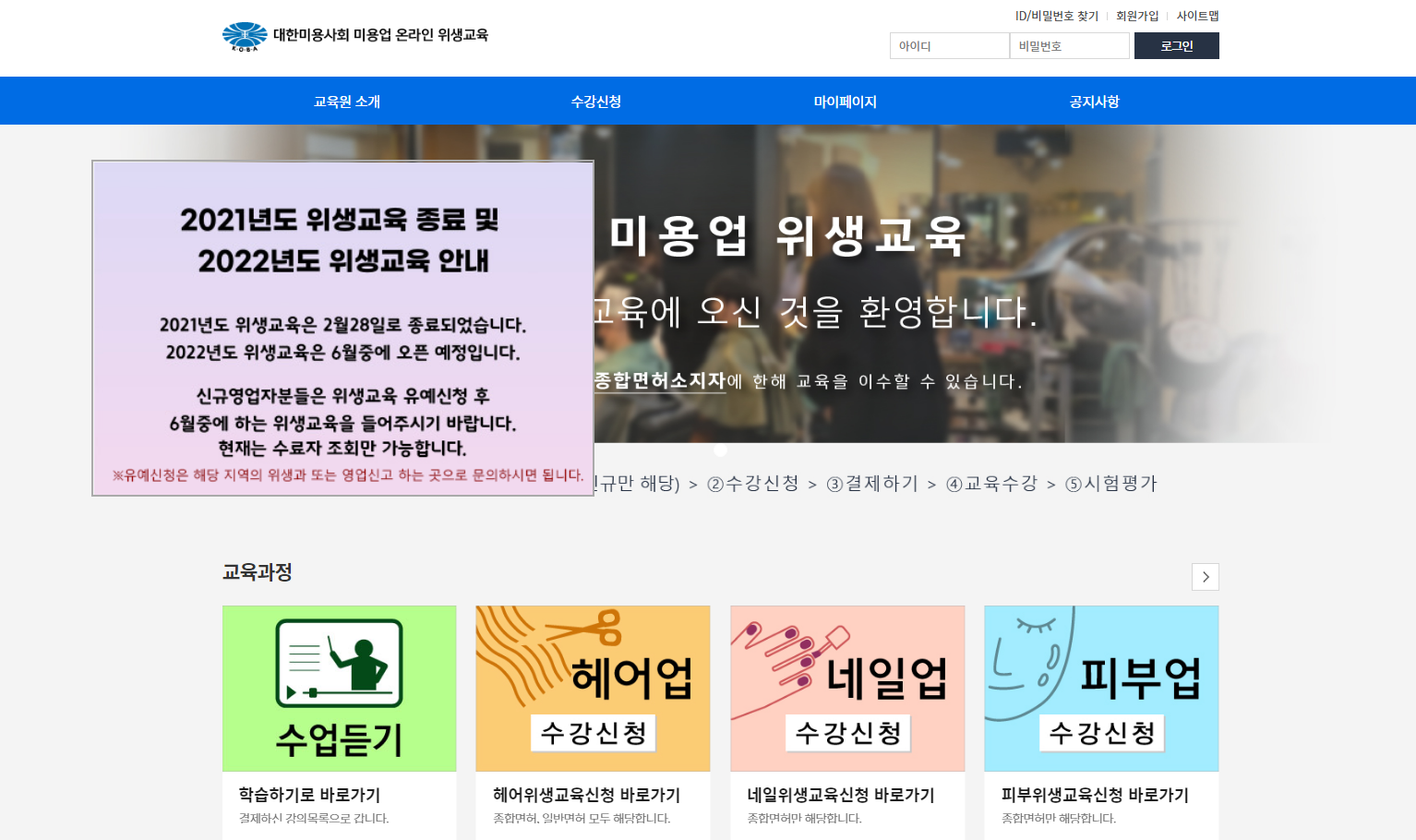 2022년도 위생교육은 2022년 6월중 오픈예정입니다.