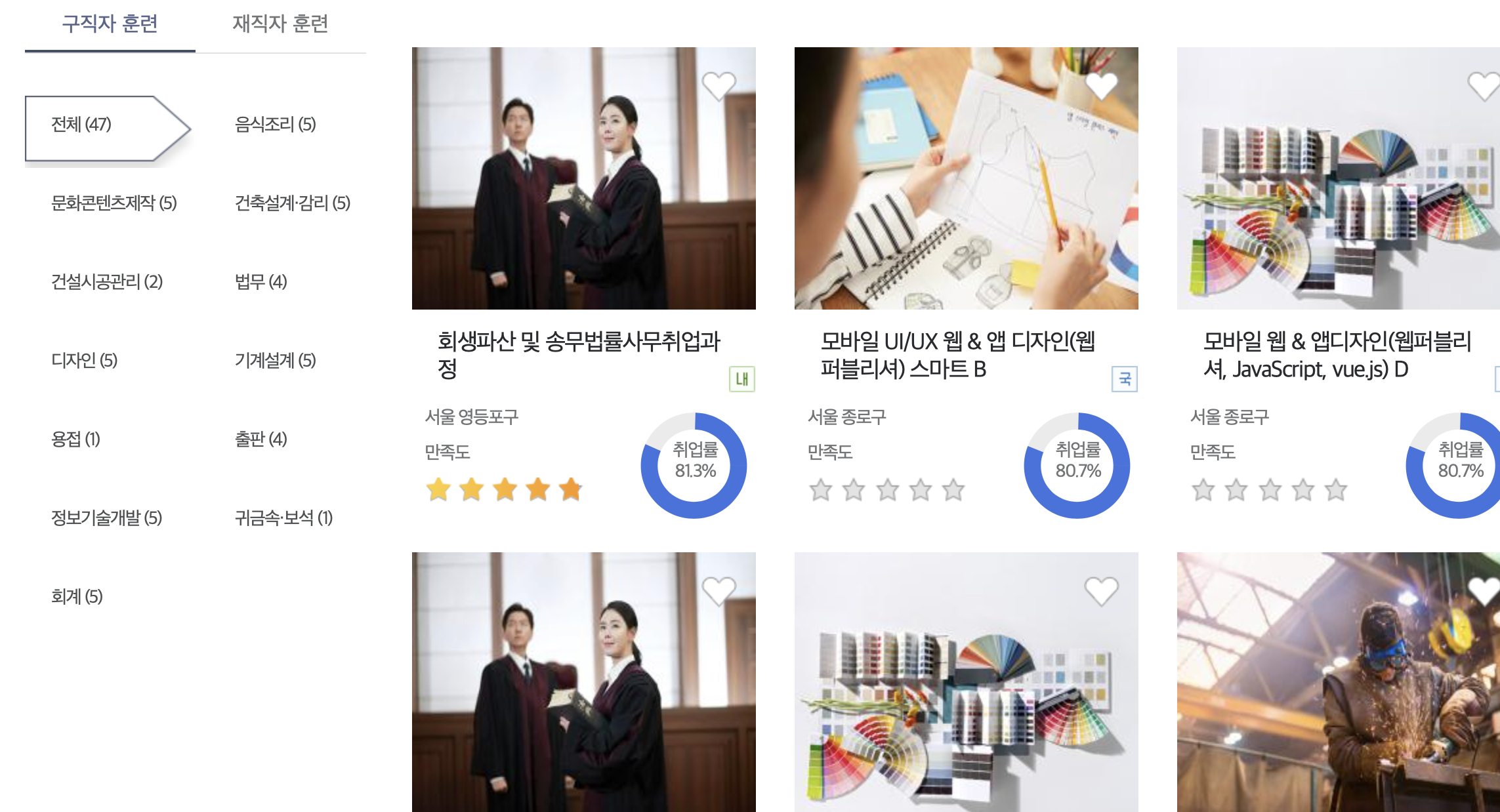 전체 / 음식조리 / 문화콘텐츠제작 / 건축설계 감리 / 건설시공관리 / 법무 / 디자인 / 기계설계 / 용접 / 출판 / 정보기술개발 / 귀금속 보석 / 회계