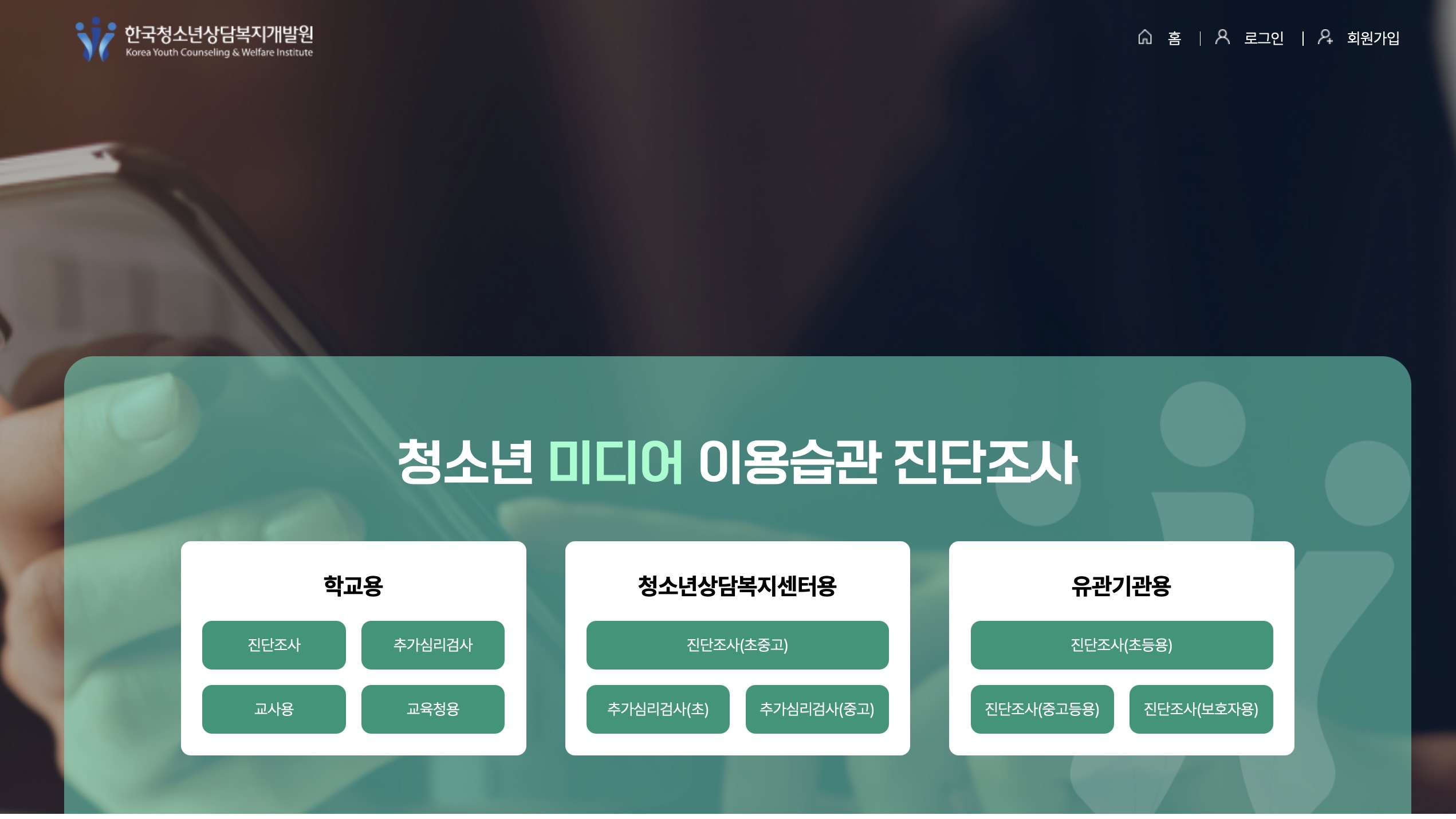 청소년 미디어 이용습관 진단조사 학교용 진단조사 추가심리검사 교사용 교육청용 청소년상담복지센터용 유관기관용